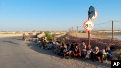 塔吉克斯坦边防部队公布的照片显示阿富汗政府士兵坐在塔吉克斯坦-阿富汗边境线附近塔吉克斯坦境内的一座桥梁附近。(2021年6月22日)