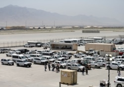 美军撤走后停放在巴格拉姆基地的撤离。(2021年7月5日)