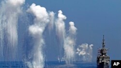 吴钊燮星期一对台湾媒体说,据可靠消息透露,预计白宫大约下个月向国会发出通知,放行两艘军舰和其他一些小型军售。吴钊燮说,这两艘军舰是“热舰”,台湾不必再花费启封。