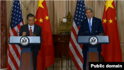 克里和王毅星期三中午在国务院举行会谈,双方在会谈前对香港占中抗议的情势各自表态。